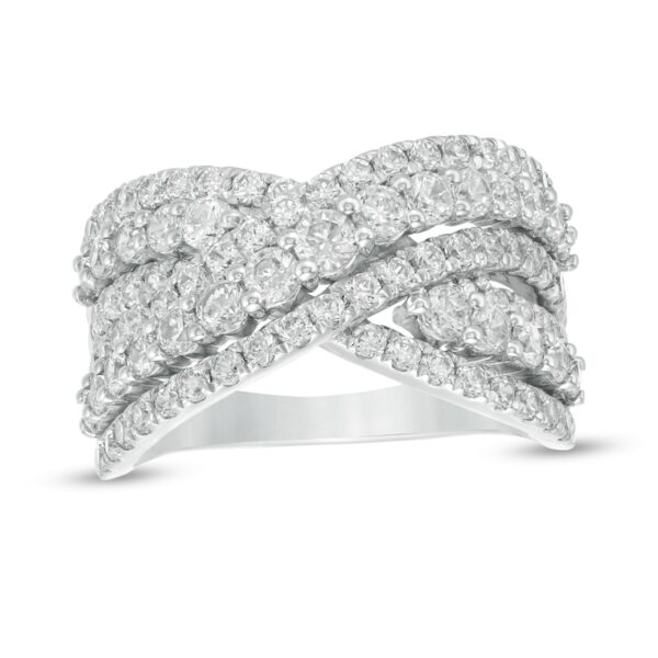 Luxe and lovely, this diamond triple-row crossover ring is an outstanding look you’ll love to wear day or night.
