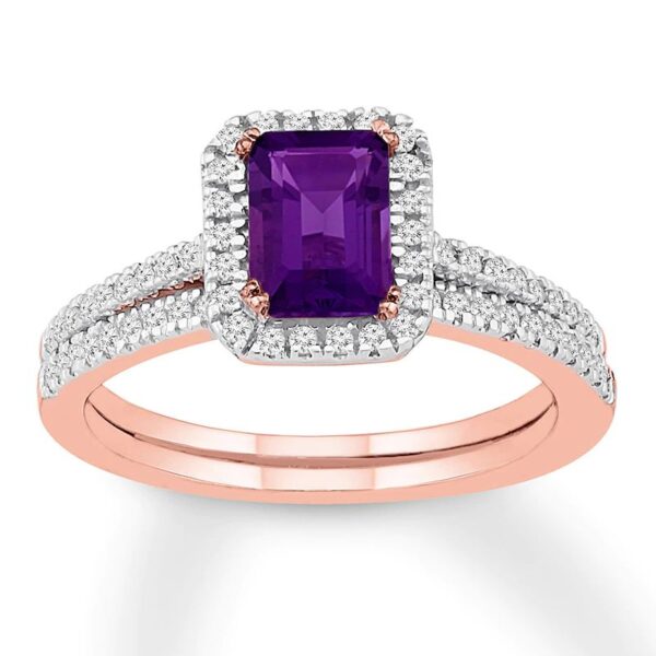 Amethyst Bridal Set 1/3 ct tw Diamonds 14K Rose Gold