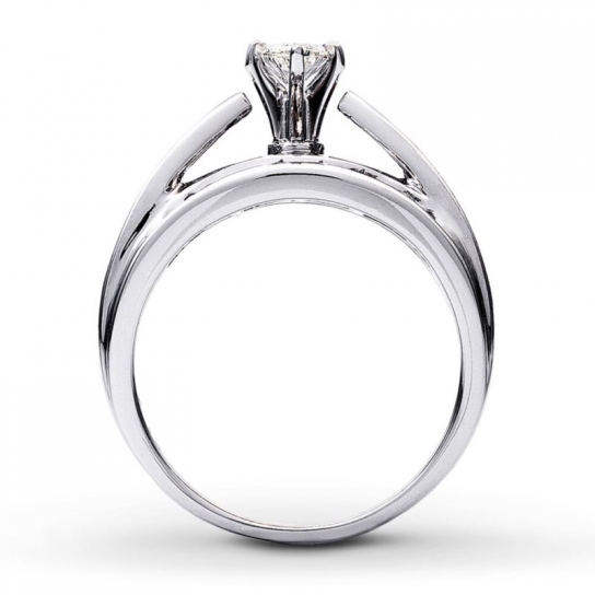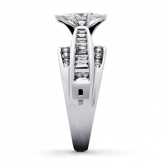 One and one-half carats of diamonds sparkle in this beautiful diamond ring crafted of high-polish 14K white gold. The center marquise diamond is near-colorless and surrounded by rows of channel-set round and baguette diamonds. Available online while supplies last. Previously Owned Treasures are not eligible for in-store pick-up. Previously Owned Treasures may only be shipped either to your home address or to an alternate address.