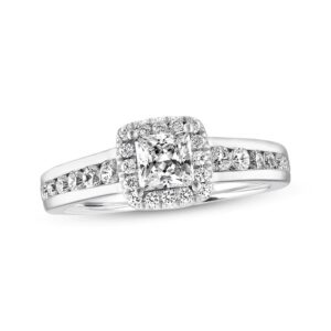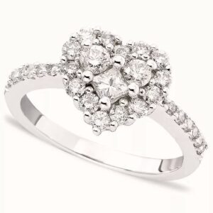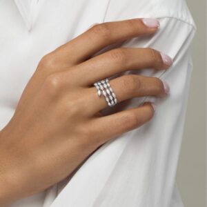 Three round diamonds command attention in the center of this unforgettable ring for her. Additional round diamonds dance on either side for added dazzle. The ring, styled in 14K white gold, has a total diamond weight of 2 1/2 carats. Available online while supplies last. Previously Owned Treasures are not eligible for in-store pick-up. Previously Owned Treasures may only be shipped either to your home address or to an alternate address.
